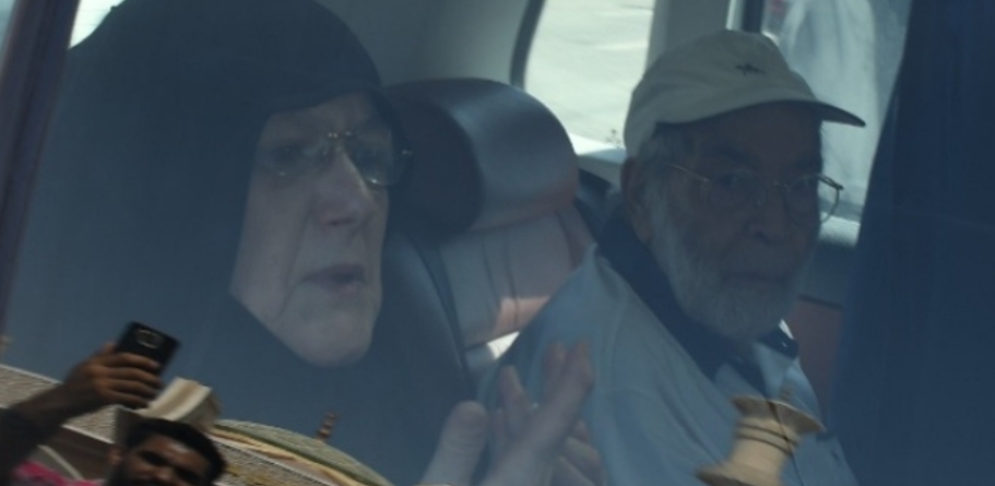 الصور الأولى لـ حسن يوسف وشمس البارودي في جنازة نجلهما