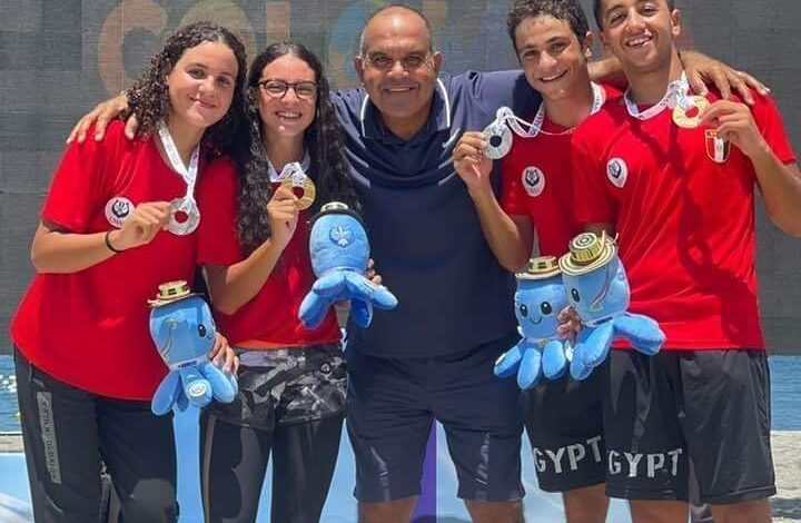 بذلك قد حققت مصر ٦ ميداليات حتى الآن في منافسات بطولة العالم للسباحة بالزعانف المقامة حاليا في كولومبيا.