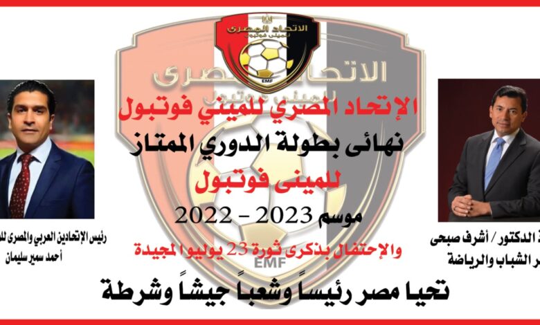 يواصل قطار الميني فوتبول نجاحه للعام الثالث علي التوالي وإنطلاقه من محطة إلي محطة مع قائد قطار الميني فوتبول مؤسس ورئيس الإتحاد المصري للميني فوتبول أحمد سمير سليمان وموعدنا مساء اليوم السبت 22 يوليو 2023 مع المباراة النهائية لبطولة الدوري الممتاز للميني فوتبول ( كرة القدم المصغرة ) النسخة الثالثة موسم 2022/2023 بين فريقي حبيب الكل القليوبية وفريق المدينة أ المنيا علي الملعب الرسمي للإتحاد المصري للميني فوتبول بنادي إيرو سبورت ستار ليواكب الإحتفال برأس العام الهجري.