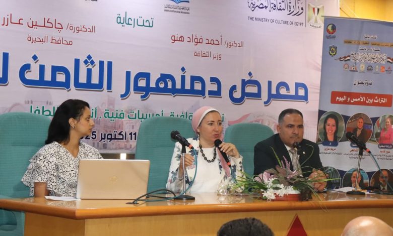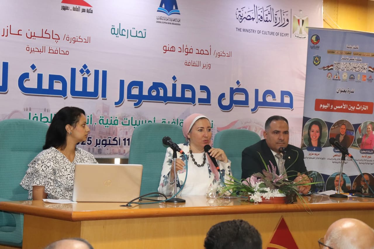 جامعة دمنهور تعزز مشاركتها في معرض دمنهور الثامن للكتاب بندوة بعنوان “التراث بين الأمس واليوم”
