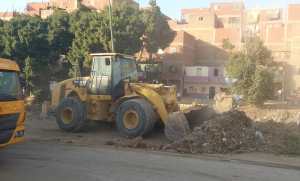 وقد تم الدفع بعدد من الحفارات واللوادر التابعة لمديرية الري والشركة المنفذة للأعمال وشركة نهضة مصر وتكثيف أعمال النظافة لرفع كافة المخلفات والتراكمات.
