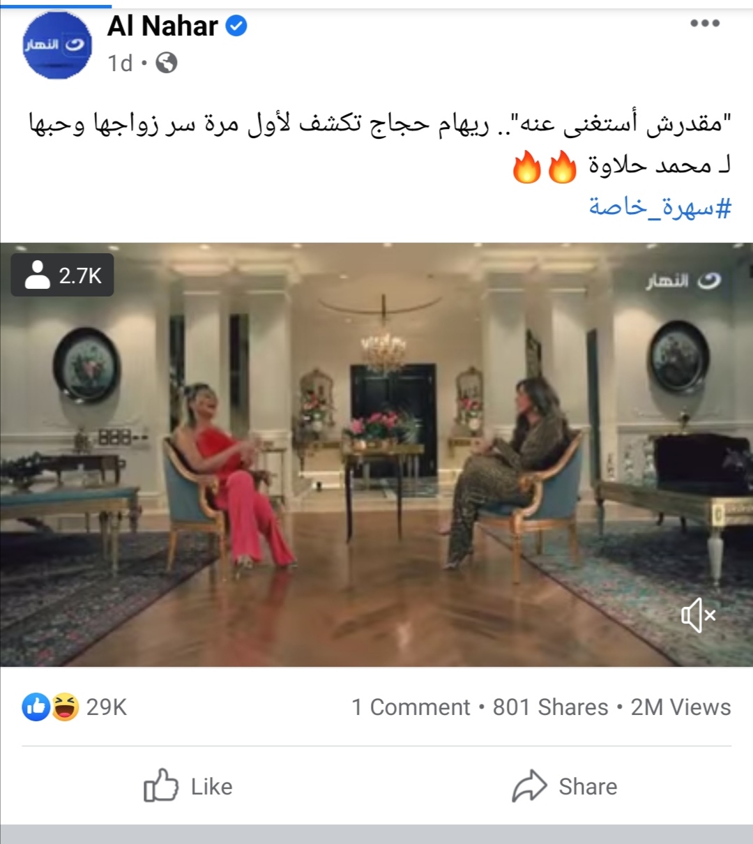 قناة النهار تلغي خاصية التعليقات علي صفحتها بالفيسبوك لحلقة ريهام حجاج دون غيرها