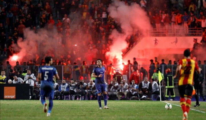 ويذكر أن الجماهير التونسية قد عملت على إشعال الشماريخ كما أيضاً أثارة بعض الشغب. حيث جاء ذلك كله بعد أن قام النادي التونسي بمخالفة قرارات الاتحاد الأفريقي. وذلك بالسماح بحضور 5 ألف مشجع بينما شهد عدد كبير من الجماهير داخل الملعب .