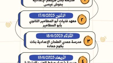 تعرف على جدول زيارات المكتبة المتنقلة خلال الفترة من 16 حتى 20 نوفمبر الجاري تحت رعاية الدكتورة جاكلين عازر،…